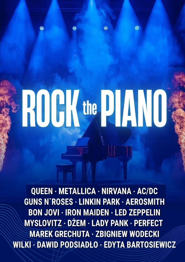 Zanurz się w magicznym świecie dźwięków, w którym fortepian w niezwykłej harmonii spotyka się z legendarnymi rockowymi kompozycjami ostatnich dziesięcioleci. Czekają na Państwa najsłynniejsze hity takich gwiazd muzyki jak Queen, Metallica, Guns N'Roses, Aerosmith, Nirvana, Linkin Park, Bon Jovi, Iron Maiden, Led Zeppelin, Myslovitz, Dżem, Wilki, Perfect, Lady Pank, Kortez, Marek Grechuta, Zbigniew Wodecki, Dawid Podsiadło, Edyta Bartosiewicz, i wielu innych legend.