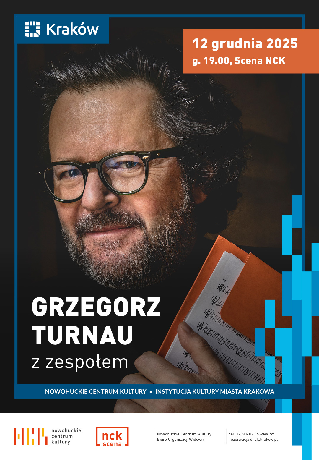 Zapraszamy na wyjątkowy koncert wyjątkowego Artysty - Grzegorza Turnaua, podczas którego usłyszymy repertuar przekrojowy - od największych, znanych przebojów Artysty, po te jeszcze nieznane piosenki z najnowszej z płyty, która ukaże się wczesną jesienią tego roku.