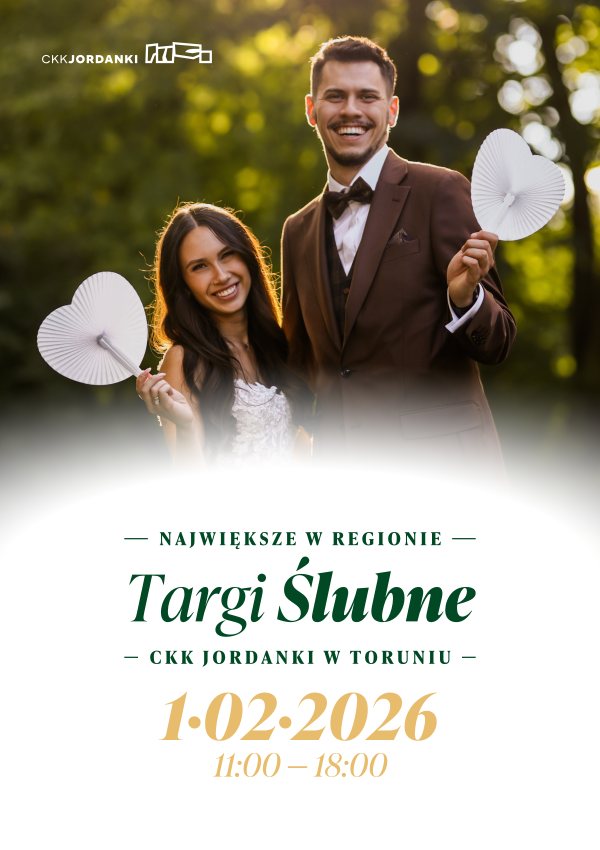 Serdecznie zapraszamy na największe targi ślubne w regionie kujawsko-pomorskim, które odbędą się już 1 lutego 2026 roku, w godz. 11:00–18:00 w Centrum Kulturalno-Kongresowym Jordanki, przy Alei Solidarności 1-3, 87-100 Toruń.