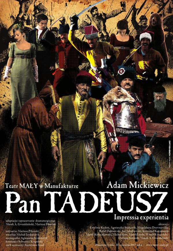 Wielobarwność i wnikliwe spisanie poetyckim słowem, tej prawie każdemu znanej historii w rytmie trzynastozgłoskowego wiersza przez Wielkiego Wieszcza Adama Mickiewicza upoważnia do jak najczęstszego sięgania po to dzieło. „Pan Tadeusz czyli Ostatni zajazd na Litwie” to utwór skrzący się feerią barwnych postaci, arcyciekawą intrygą i artyzmem polskiego języka. To mistrzowska kompozycja literackiego uniesienia powstałego pod wpływem natchnienia, potrzeby chwili i emigracyjnej tęsknoty za ojczyzną. Ten spektakl jest impresją na zadany temat, na podstawie skrótowej acz odpowiedzialnej adaptacji dla potrzeby teatralnej przygody. Jedenastu aktorów zaprasza Państwa na wspólną peregrynację po świecie minionym, lecz nie zapomnianym, z nieco patriotycznym spojrzeniem na polską historię…