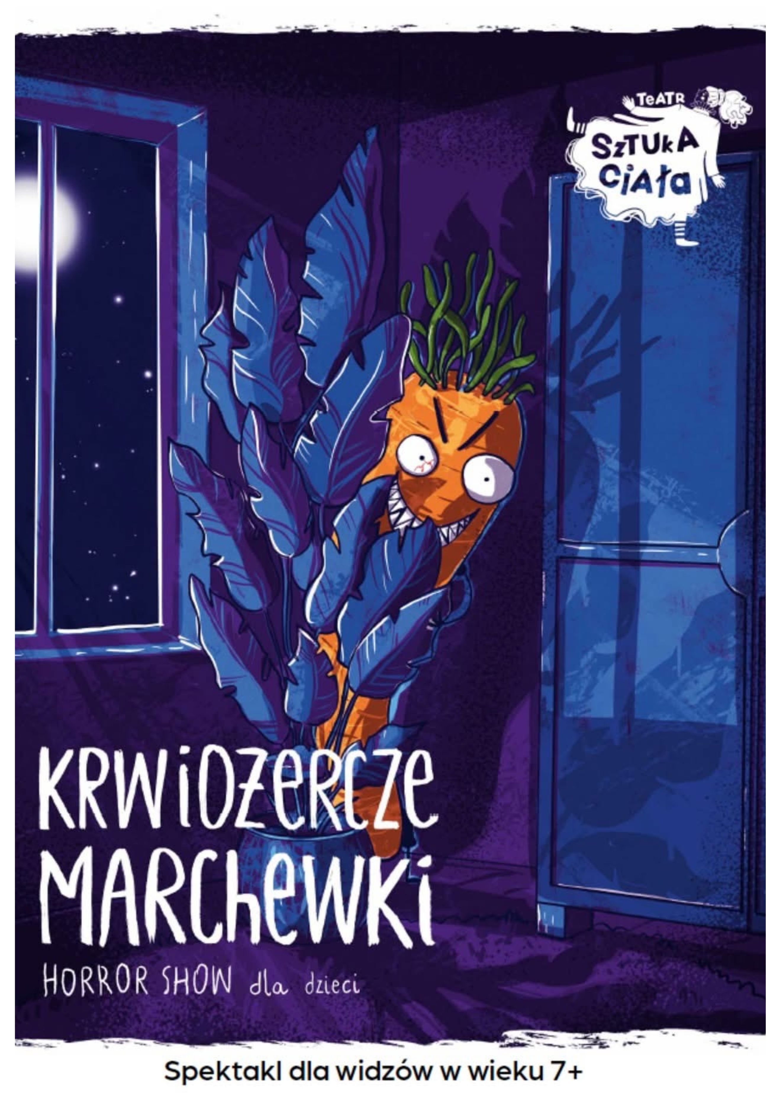 Czy kiedykolwiek baliście się… marchewki?! „Krwiożercze Marchewki” to lekki horror show dla dzieci (7+), który z przymrużeniem oka pokazuje, jak można oswoić największe strachy. Zapraszamy na pełną emocji podróż, gdzie strach i śmiech idą ramię w ramię!