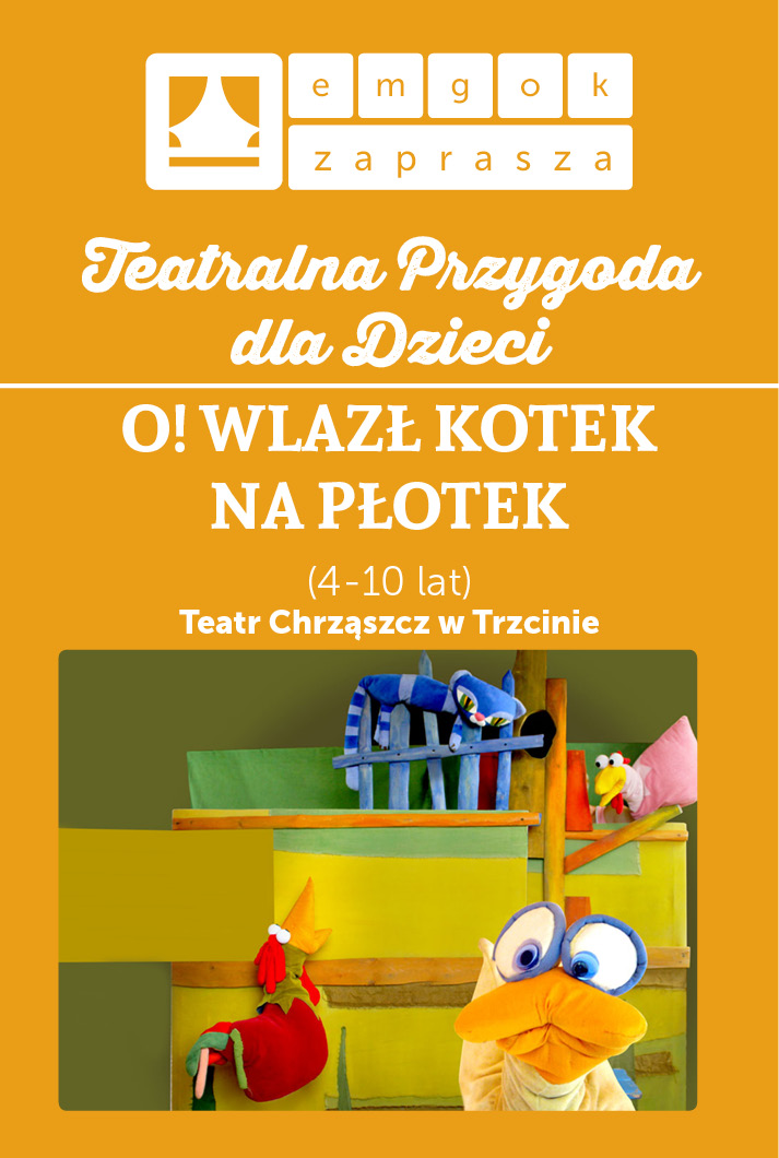 Spektakl inspirowany dobrze wszystkim znaną piosenką „Wlazł kotek na płotek”. Przyglądamy się wiejskiemu podwórku, na którym pojawia się „obcy” – kotek… , co wywołuje spore zamieszanie pośród drobiu. Kura z kogutem oburzają się tak bezpardonowym zajęciem płotka, a póki kotek się zorientuje, już staje się obiektem podwórkowej awantury. Na szczęście nie wszystkie zwierzęta poddają się zbiorowej sugestii i cała historia kończy się „happy endem”. Barwne postaci kaczki, kury, koguta, indyka odgrywają lalki typu mapet. W sposób lekki i nienachalny przedstawienie porusza problem nietolerancji i rodzenia się agresji w grupie, a poprzez współuczestnictwo uczy dzieci asertywnego myślenia. Dostarcza też mnóstwo dobrej zabawy, jest pełne dziecięcego humoru i scenicznych gagów.