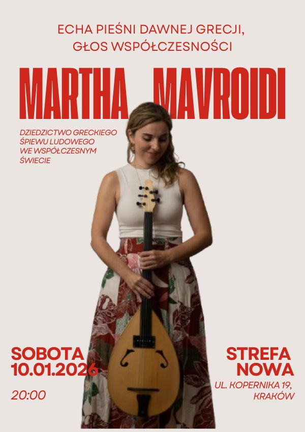 Koncert Marthy Mavroidi to spotkanie głosów, historii, kultur i epok — pełne subtelności, energii i niezwykłego piękna, które od lat wyróżnia jej twórczość.