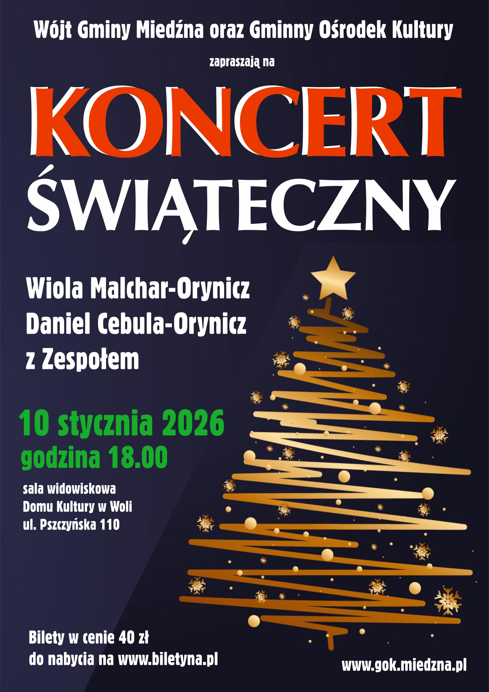 Wyjątkowy, pełen ciepła i muzycznej magii Świąteczny Koncert w wykonaniu duetu Wiola Malchar-Orynicz i Daniel Cebula-Orynicz wraz z towarzyszącym im zespołem. Artyści zabiorą publiczność w nastrojową podróż przez najpiękniejsze kolędy, pastorałki oraz świąteczne utwory w autorskich, pełnych emocji aranżacjach.