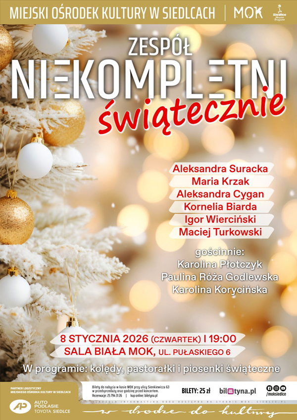 Zapraszamy na wyjątkowy, nastrojowy i pełen zimowej magii koncert „Niekompletni świątecznie”.