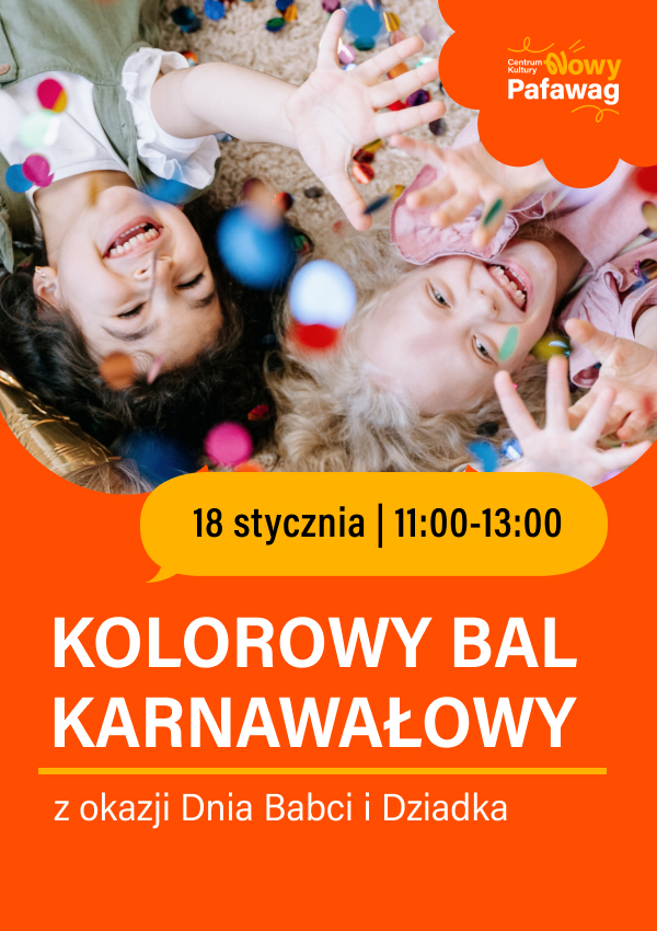 Z okazji Dnia Babci i Dziadka zapraszamy Was na wyjątkowe, międzypokoleniowe święto – kolorowy bal karnawałowy, podczas którego wspólnie zatańczymy, pośmiejemy się i spędzimy cudowny czas w rodzinnej atmosferze 💛