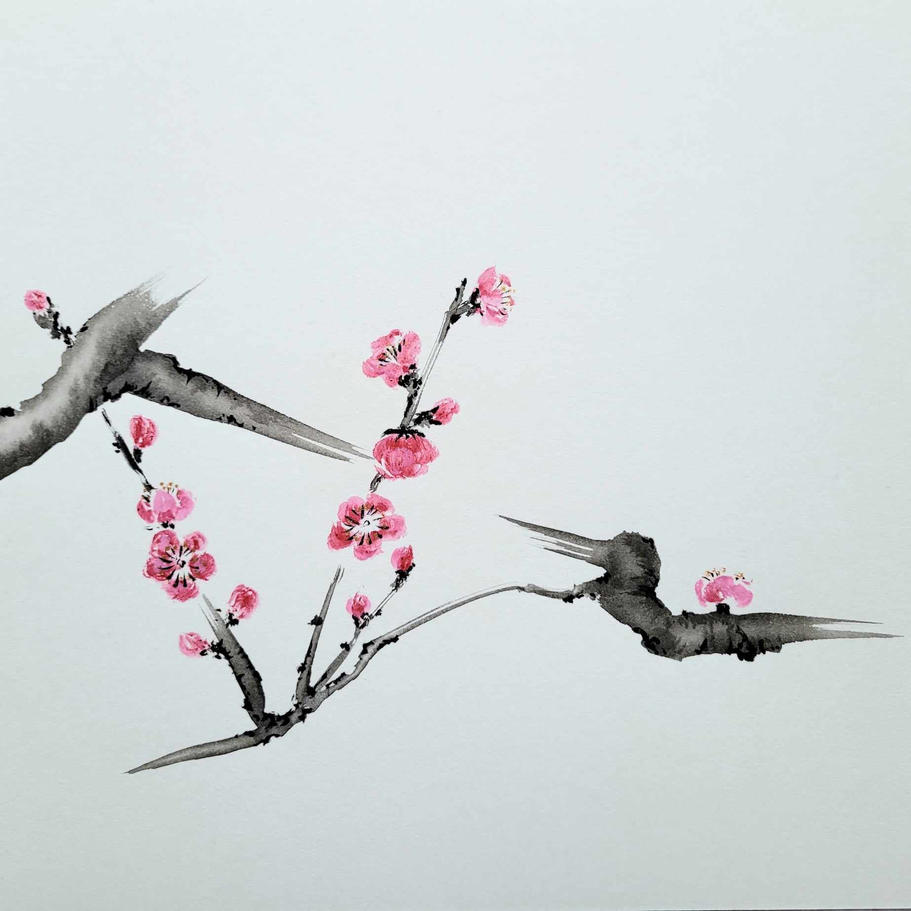 Japonia - forma i doświadczenie. Warsztaty malarstwa tuszowego, temat: kwiat śliwy