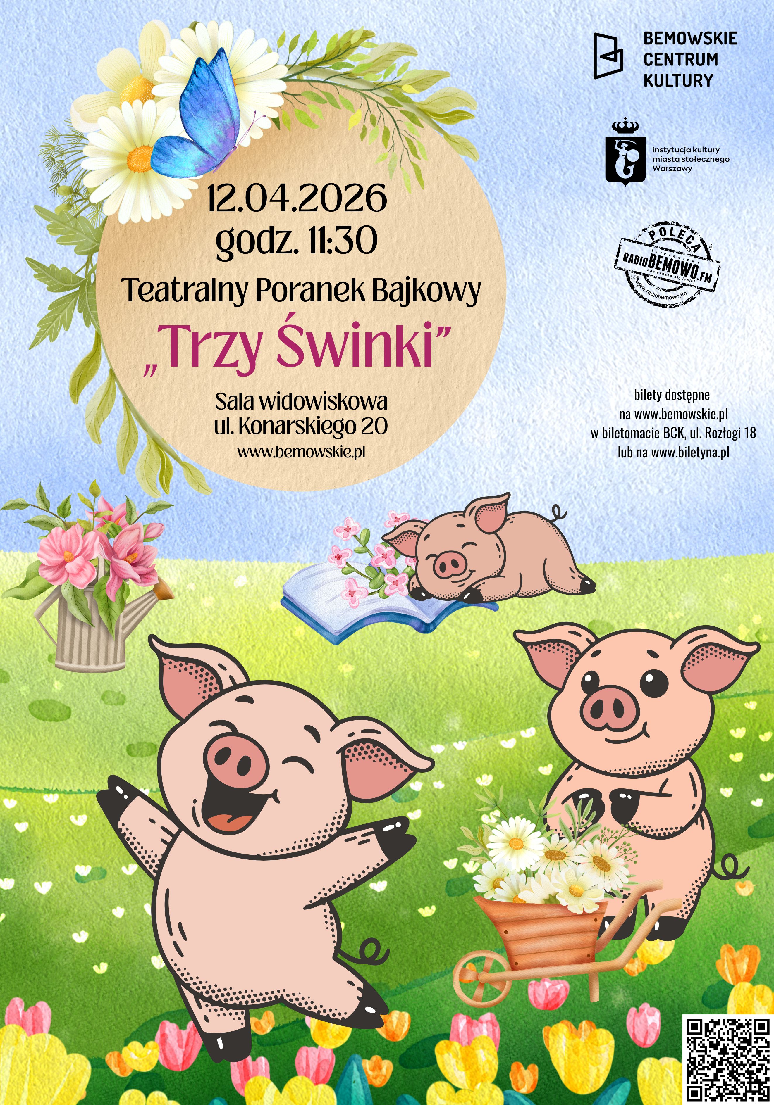 Pełna humoru i energii adaptacja klasycznej bajki, która wprowadzi dzieci i dorosłych w świat wspaniałej zabawy! W tej wyjątkowej wersji, znane postacie – trzy sprytne świnki – przeżywają niecodzienne przygody, a ich zmagania z groźnym wilkiem pełne są śmiechu, niespodzianek i muzyki! Zabawna fabuła, kolorowa scenografia i piosenki, które wpleciono w fabułę spektaklu, sprawią, że każdy widz poczuje się częścią tej fantastycznej historii. Z pomocą wesołych melodii, maluchy nauczą się o przyjaźni, współpracy oraz o tym, jak ważne jest podejmowanie odpowiednich decyzji. Idealny spektakl dla całych rodzin – pełen emocji, humoru i interakcji! Perfekcyjna równowaga między edukacją a rozrywką sprawia, że „Trzy Świnki” to przedstawienie, które zostanie w pamięci na długo.
