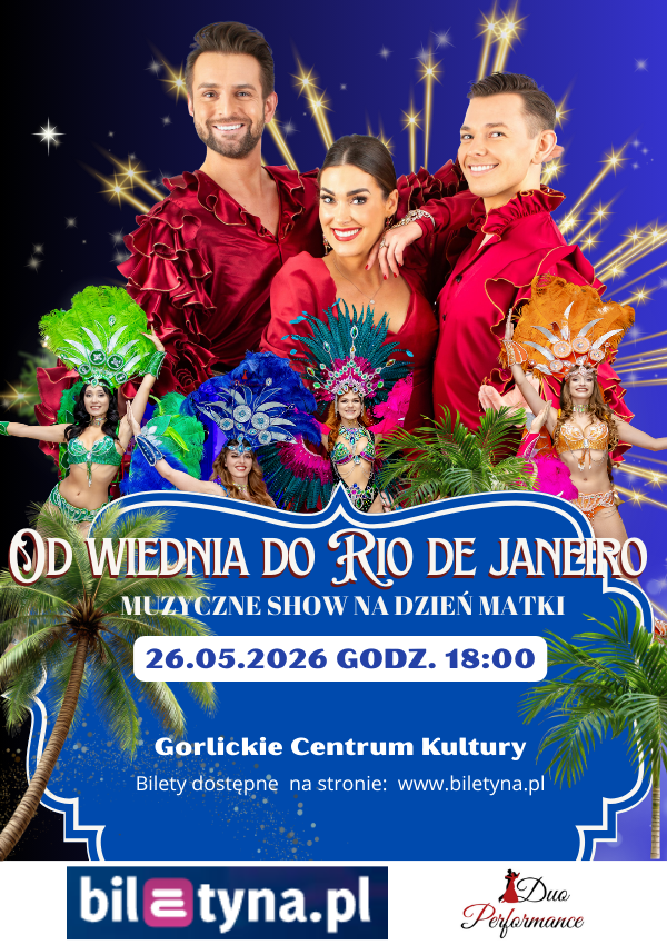 Dzień Matki w Gorlicach - podaruj Mamie wieczór pełen emocji, muzyki i magii. W ten wyjątkowy majowy wieczór Gorlice staną się przestrzenią dźwięków, barw i wzruszeń. Z okazji Dnia Matki zapraszamy na niezwykłe widowisko muzyczno-taneczne "Od Wiednia do Rio de Janeiro" - elegancki, pełen emocji spektakl, który jest idealnym prezentem dla każdej Mamy. To artystyczna podróż przez najpiękniejsze melodie Europy, aż po gorące, pełne radości rytmy Rio de Janeiro - miasta karnawału, pasji i życia. Każdy utwór, każda choreografia i każdy gest budują atmosferę święta, które celebruje kobiecość, miłość i wspólne chwile. Na scenie pojawią się charyzmatyczni gospodarze wieczoru - Monika Biederman-Pers oraz Piotr Karzełek, artyści od lat zachwycający publiczność klasą, głosem i sceniczną elegancją oraz Jakub Oczkowski - tenor, którego głos potrafi jednocześnie wzruszyć i porwać do rytmu. Wieczór dopełni taneczna energia zespołu BLING, który rozświetli scenę widowiskowymi choreografiami, oraz Duo Performance Band pod kierownictwem Mateusza Dudka, prowadząc publiczność przez muzyczną opowieść pełną emocji i ponadczasowych melodii. To nie jest zwykły koncert. To prezent z serca - wspólne przeżycie, które zostaje w pamięci na długo. To chwila zatrzymania, uśmiechu i wzruszenia. Podaruj Mamie coś więcej niż kwiaty - podaruj Jej niezapomniany wieczór. "Od Wiednia do Rio de Janeiro" w Gorlicach to idealny sposób, by wspólnie celebrować Dzień Matki w pięknej, artystycznej oprawie.