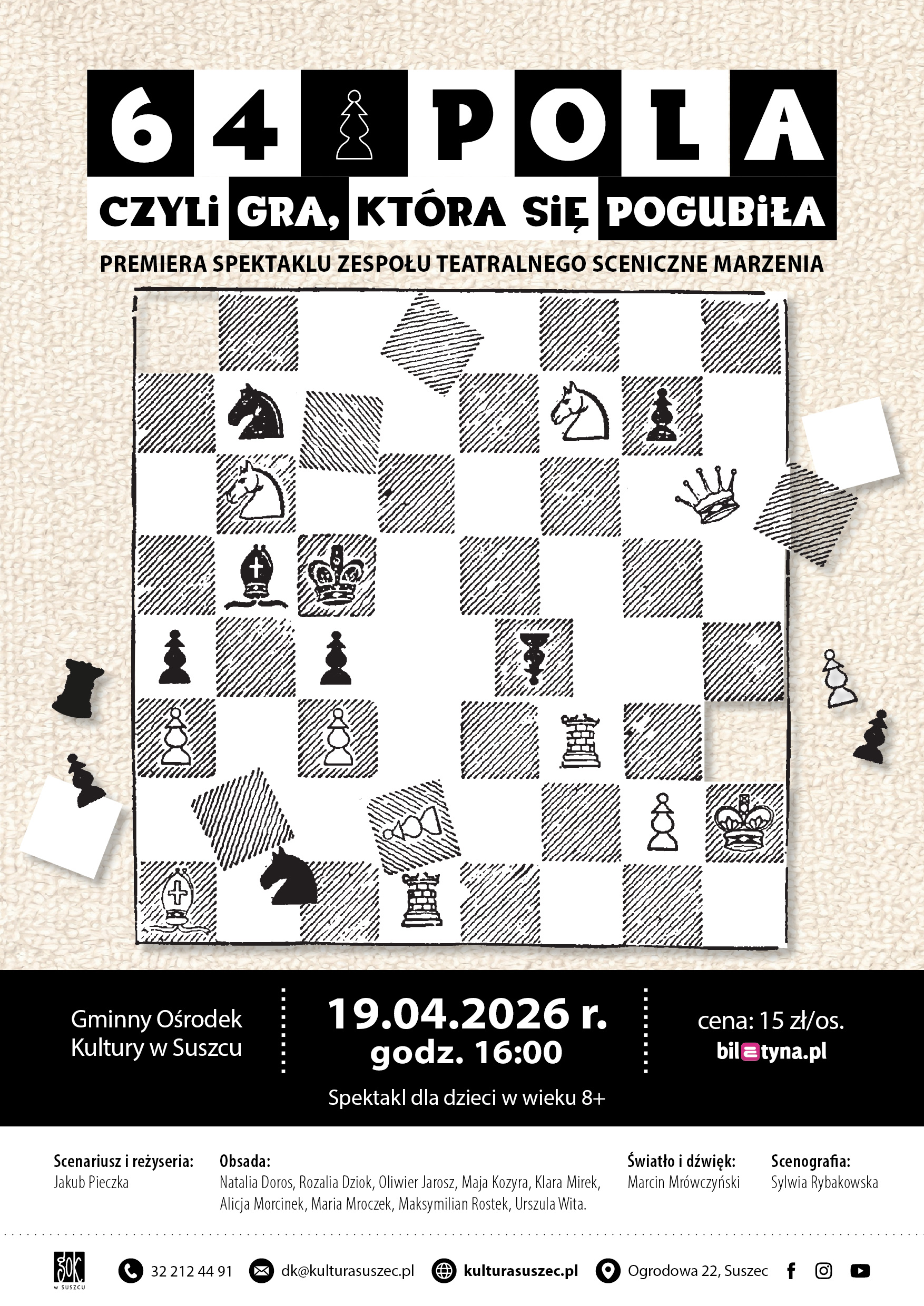 Premiera spektaklu "64 pola, czyli gra, która się pogubiła" - Zespół Teatralny Sceniczne Marzenia. Niedziela z Bajką.