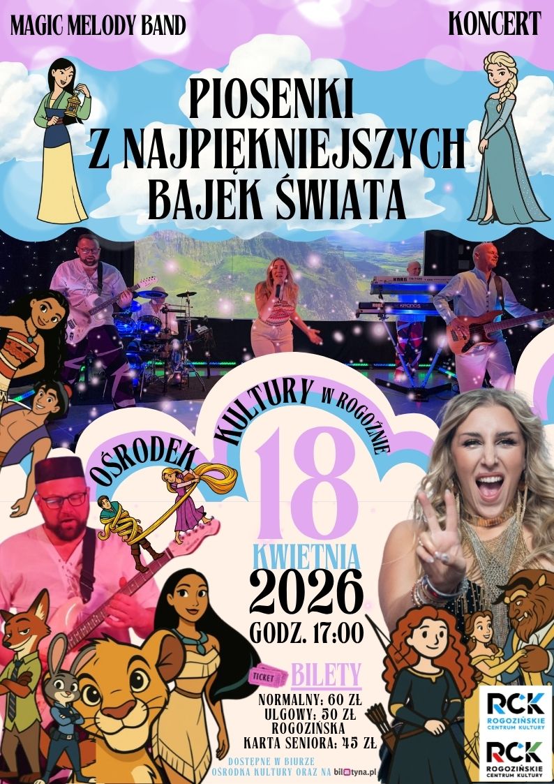 Zapraszamy w niezwykłą muzyczną podróż do świata, w którym marzenia naprawdę się spełniają. Koncert „Najpiękniejsze Piosenki z Bajek” to wyjątkowe widowisko łączące ponadczasowe melodie, filmową magię i emocje, które towarzyszą nam od dzieciństwa.